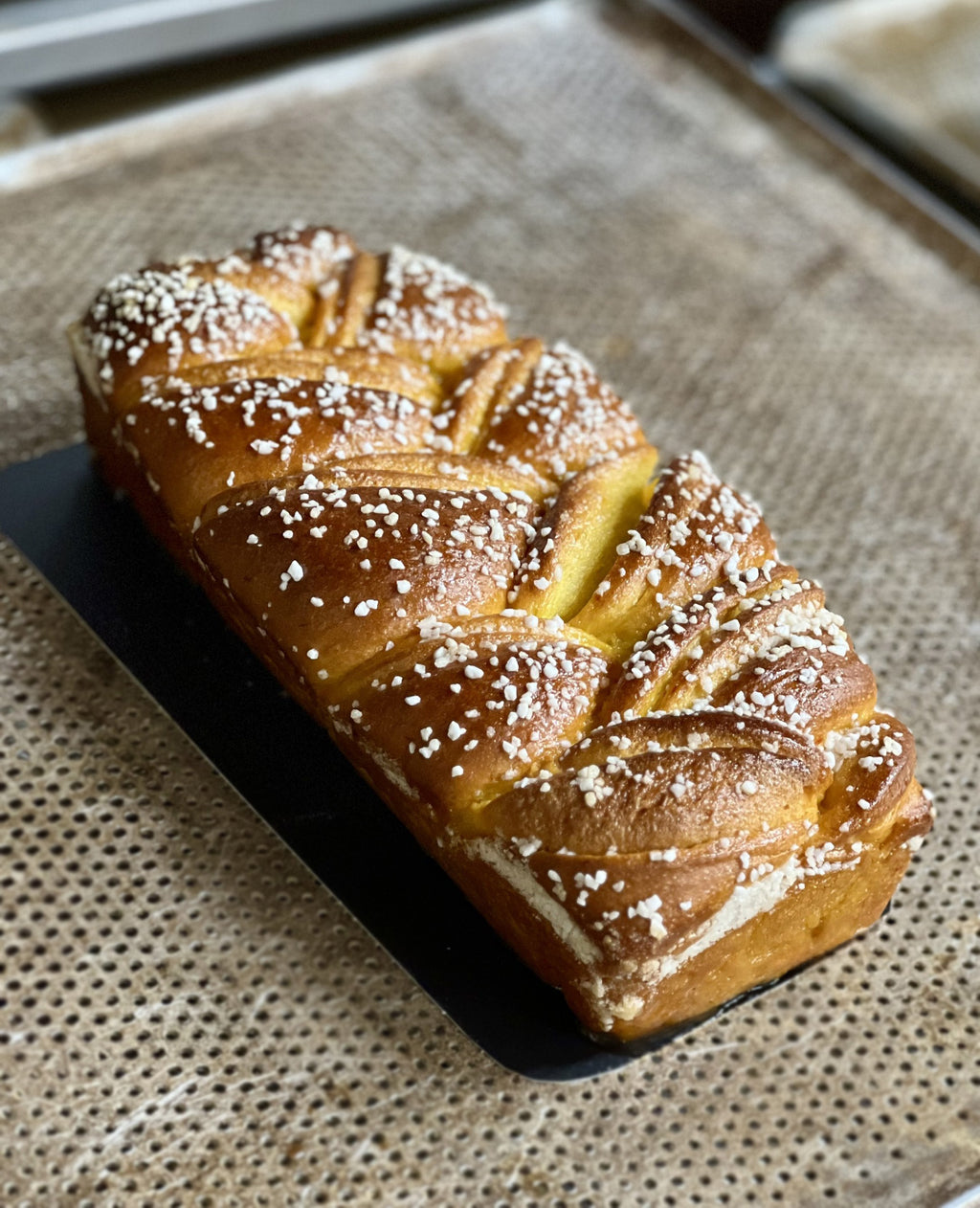 Vetemjöl, ägg, saffran, smör, socker, mjölk, jäst, pärlsocker, salt, fryspulver, maizena